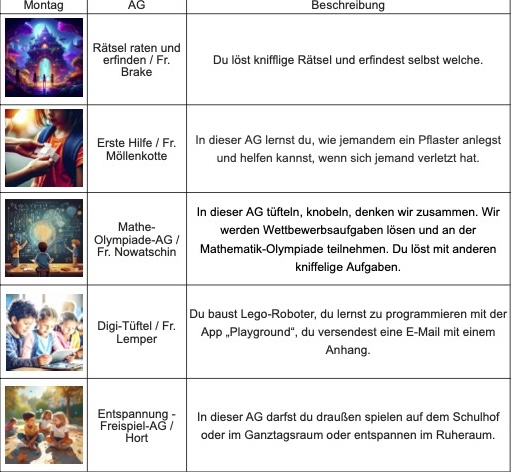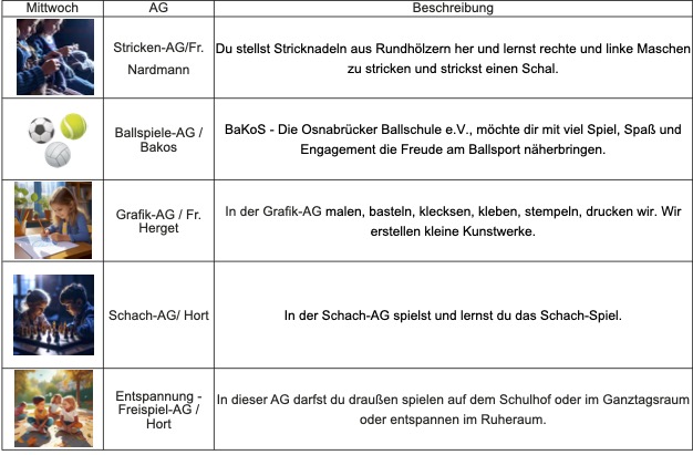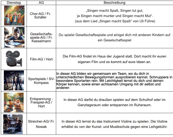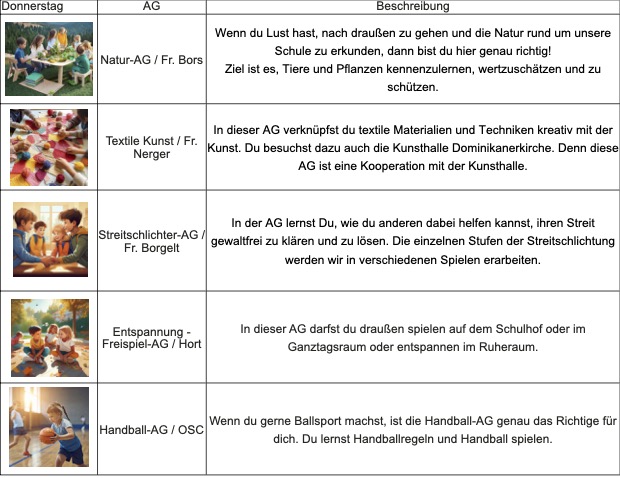26. November 2020AGs im GanztagUnsere AG-Angebote im Ganztag für die 3. und 4. Klassen im Schuljahr 2025/2026