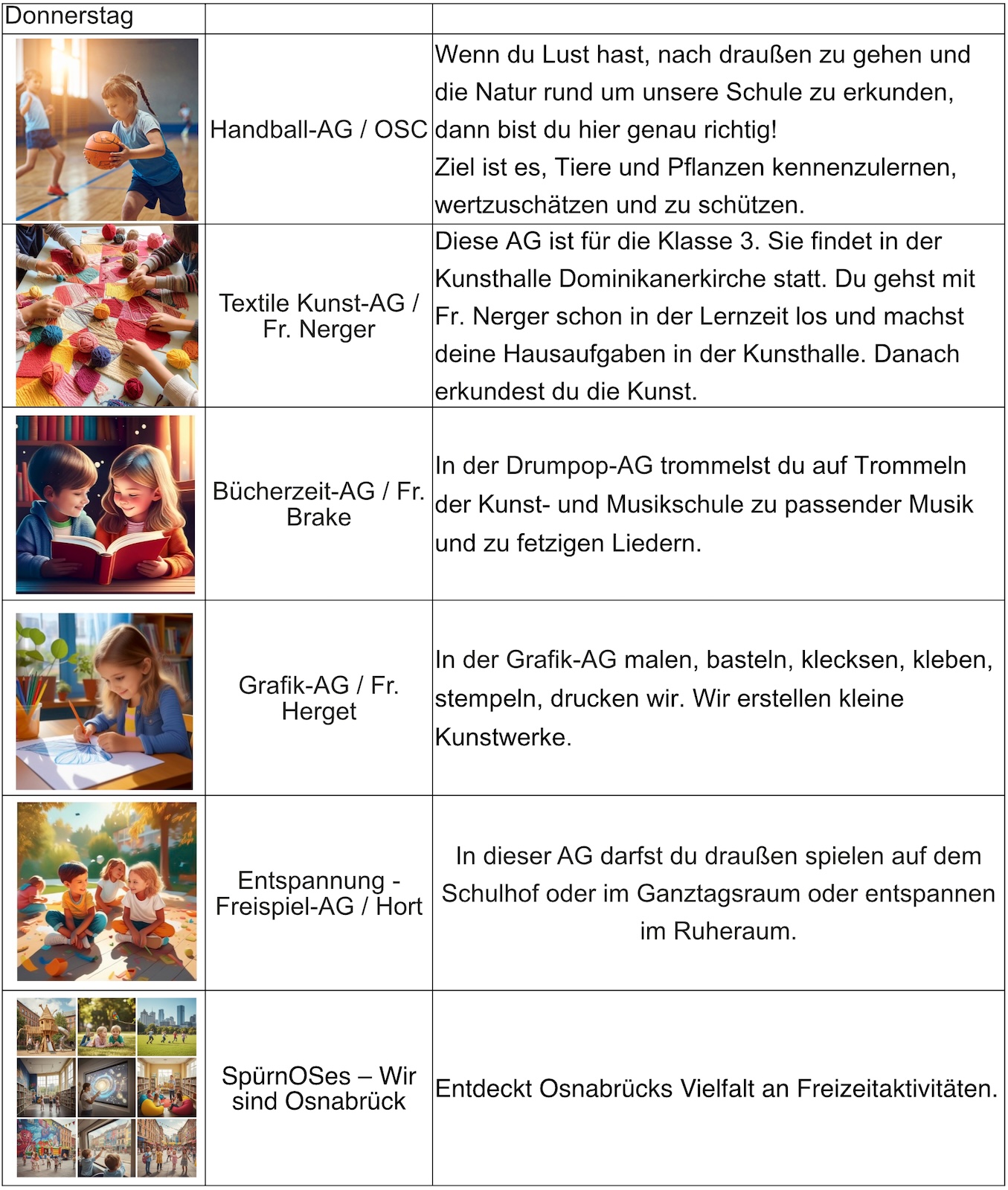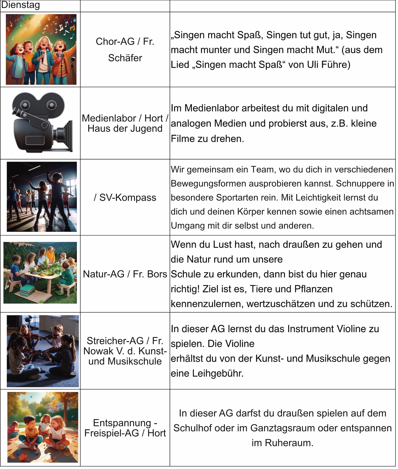 26. November 2020AGs im GanztagUnsere AG-Angebote im Ganztag für die 3. und 4. Klassen im 2. Halbajhr imSchuljahr 2025/2026