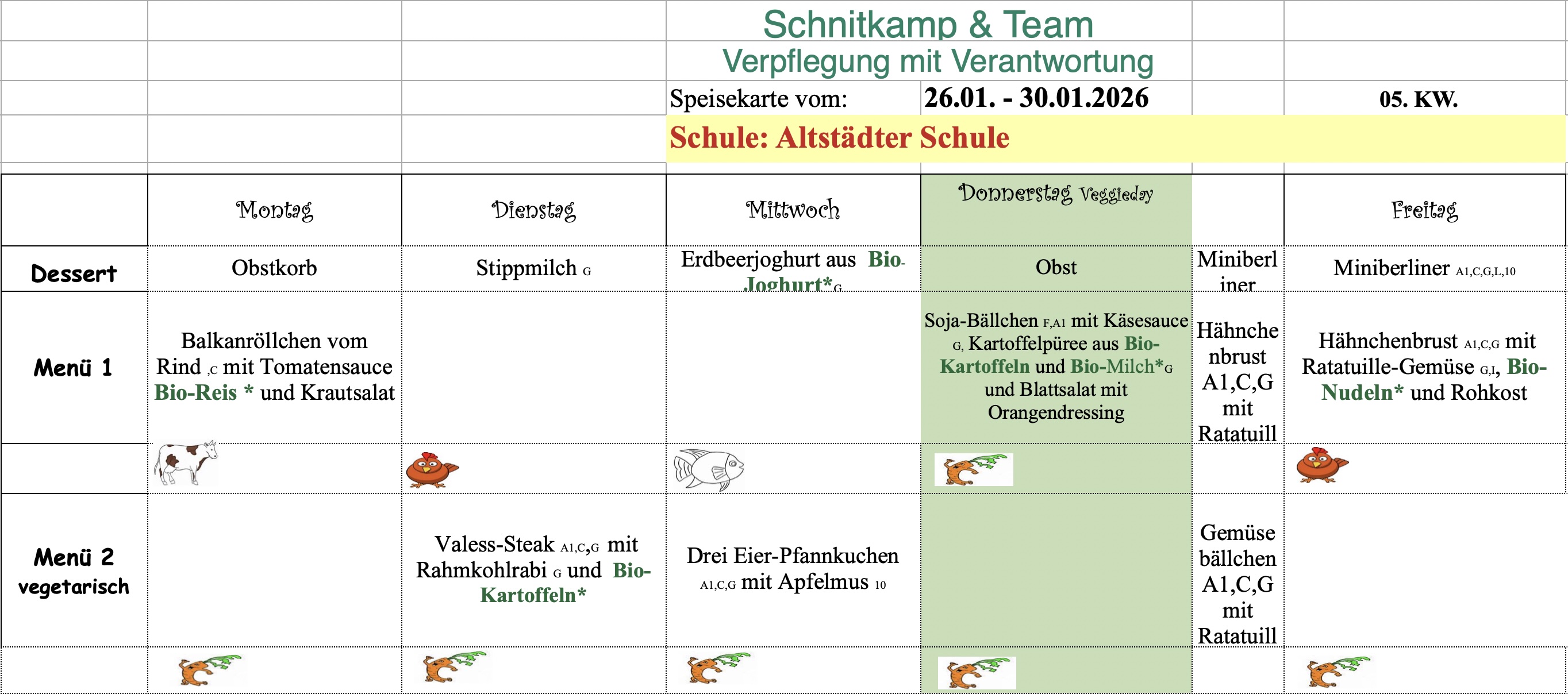 Hier der aktuelle Speiseplan der Woche: