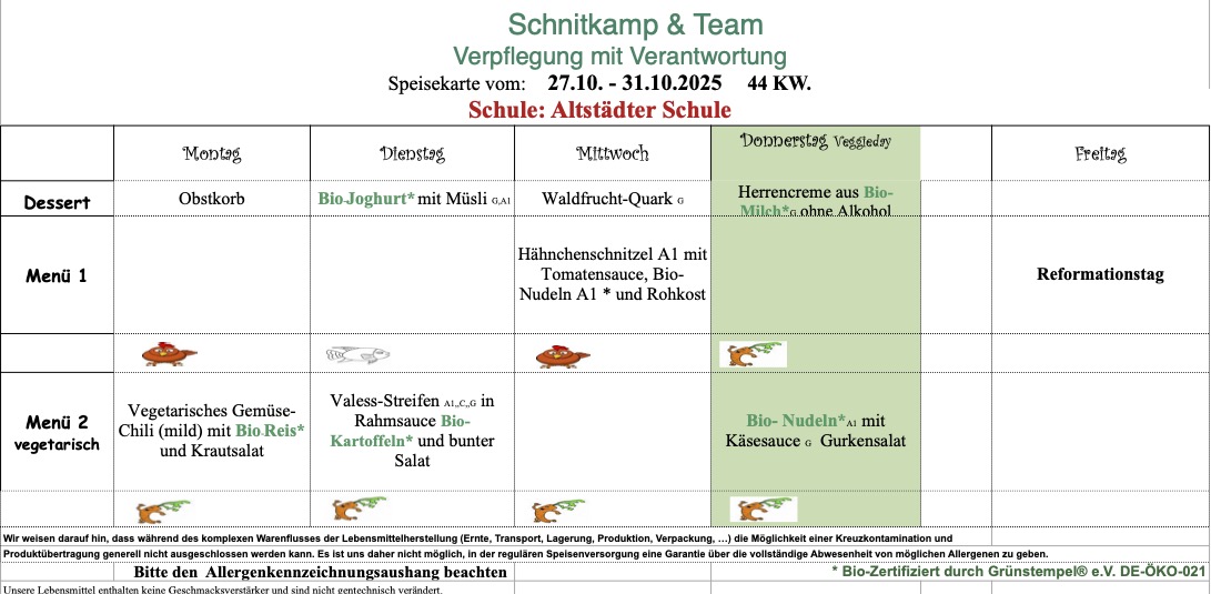 Hier der aktuelle Speiseplan der Woche: